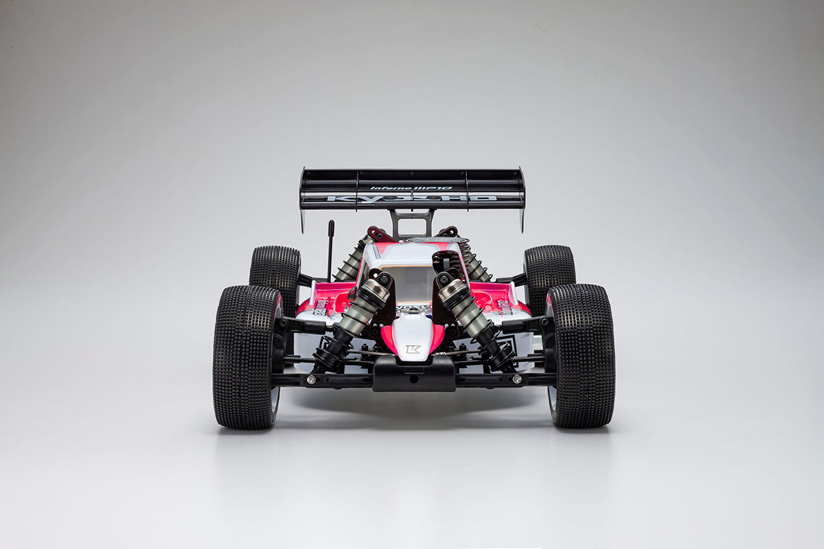The 1/8 scale GP Buggy is one of the most popular R/C car racing categories in the world. As the benchmark for competitiveness, the Inferno Series has led development through continued innovation, encouraging efforts by other manufacturers to improve their machines year by year. Based on the existing MP10 TKI2, the latest TKI3 Inferno model incorporates components and design elements that were developed for the 2022 IFMAR (International Model Car Federation) World Championships. By changing the body design, the TKI3 can adapt to a wide range of track layouts, from technical circuits with tight corners to high-speed courses typically found in Europe. Adjustable wing height also expands the range of aerodynamic settings. Thicker gauge wire in new suspension springs was introduced for the World Championships for tighter cornering control. In addition, a review of the drive system incorporated a smaller center differential with revised gear ratio and a lighter spur gear plus 3-piece clutch to improve throttle response. The MP10 TKI3 is now more capable and more adaptable to different types of course layouts, not only for high-level competition, but also just for the fun of driving very fast. Whether you are competing at the highest level or simply enjoying an R/C car in its purest form, the TKI3 exceeds all expectations.